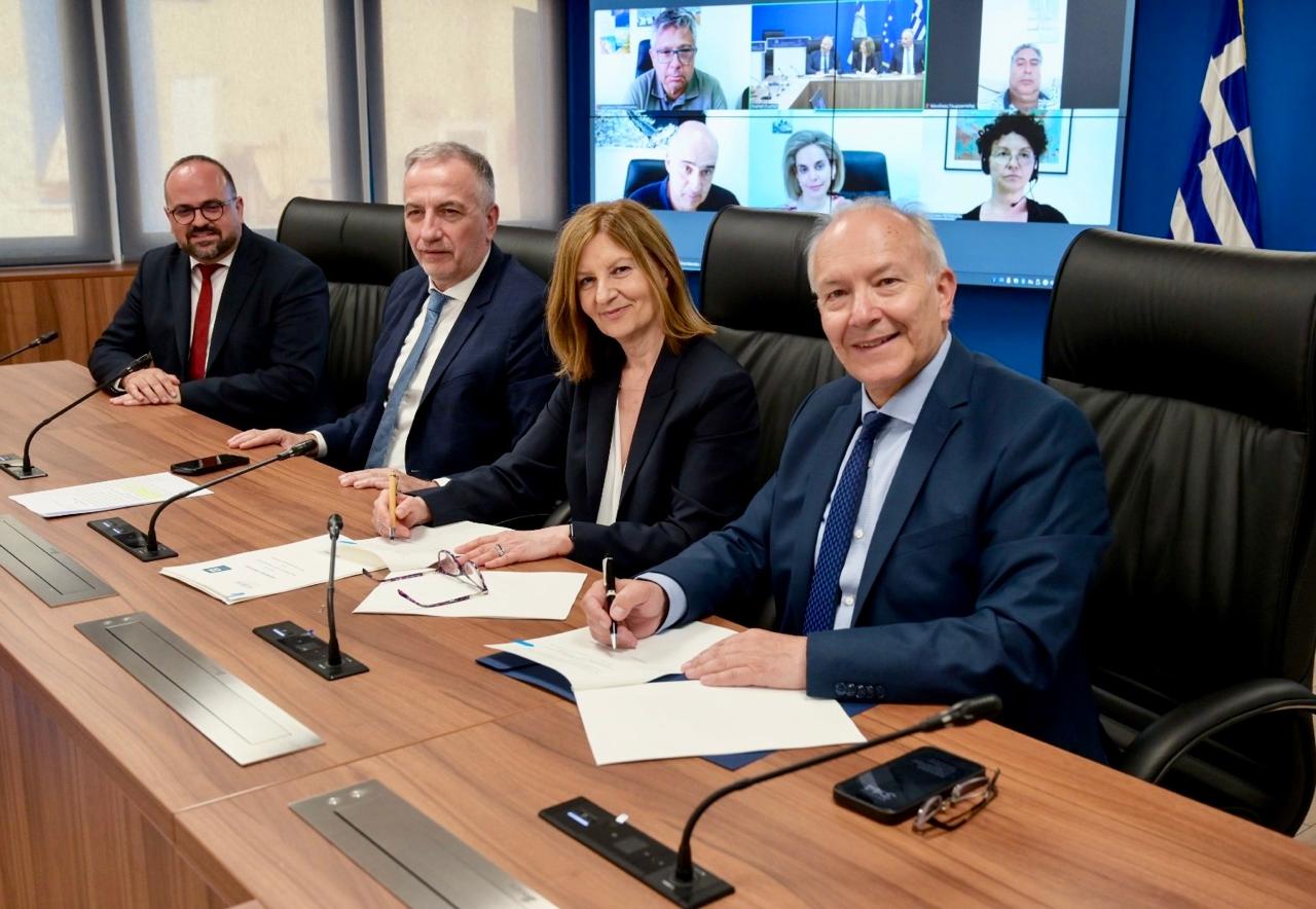 Η υπογραφή του Μνημονίου πραγματοποιήθηκε παρουσία των: Υφυπουργού Ανάπτυξης, Σταύρου Καλαφάτη, υπό την εποπτεία του οποίου τελεί το ΕΚΚΕ, του Προέδρου της Επιτροπής Περιφερειών και της Υποεπιτροπής Νησιωτικών Περιοχών της Βουλής, Βουλευτού Δωδεκανήσου, Μάνου Κόνσολα και του Γενικού Γραμματέα Αιγαίου και Νησιωτικής Πολιτικής, Μανώλη Κουτουλάκη.
