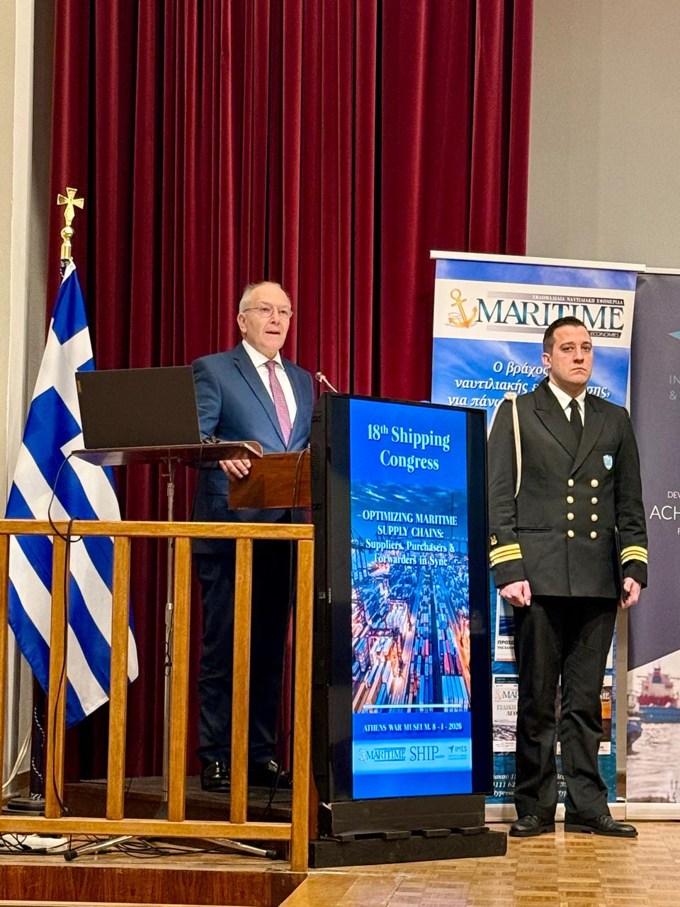 Στην έναρξη των εργασιών της Συνόδου του 18th Shipping Congress, της σημαντικής αυτής Συνάντησης για την Ναυτιλία, η οποία πραγματοποιείται από την εφημερίδα Maritime Economies, σε συνεργασία με το Institute of Maritime & Economic Synergies (IMES), παρευρέθη και μίλησε ο Υφυπουργός Ναυτιλίας και Νησιωτικής Πολιτικής Στέφανος Γκίκας.